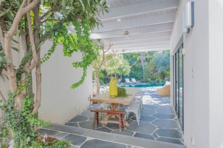 יצירת משטחי ריצוף סביב בריכת שחיה המתמזגים בשטח הגינה כולה. נבחרו אבני הריצוף המתאימות המונעות החלקה. אין צורך בתשתיות בטון. ניתן לרצף על מצעים מהודקים בלבד